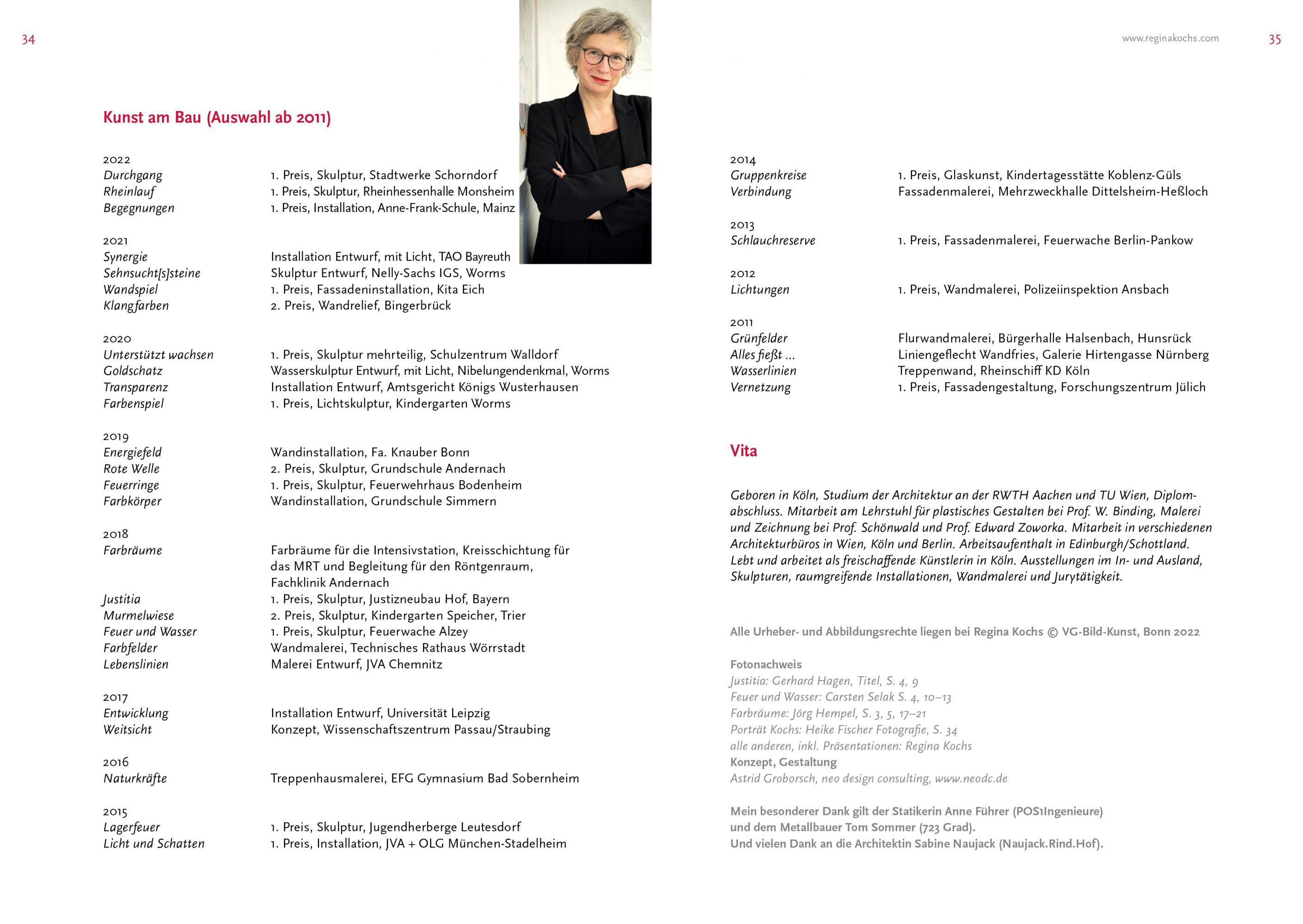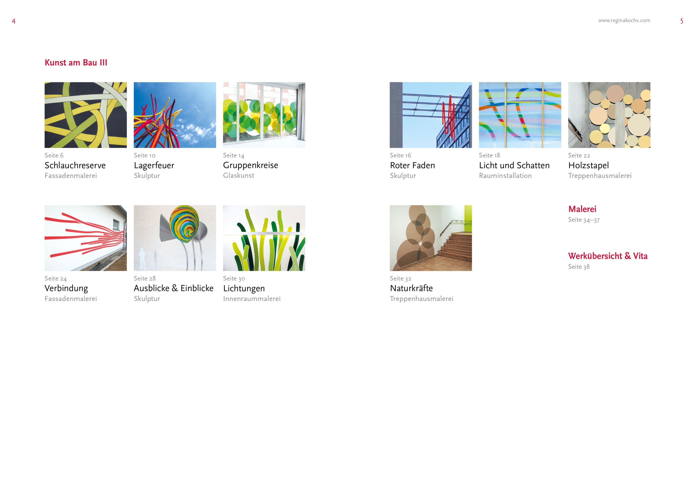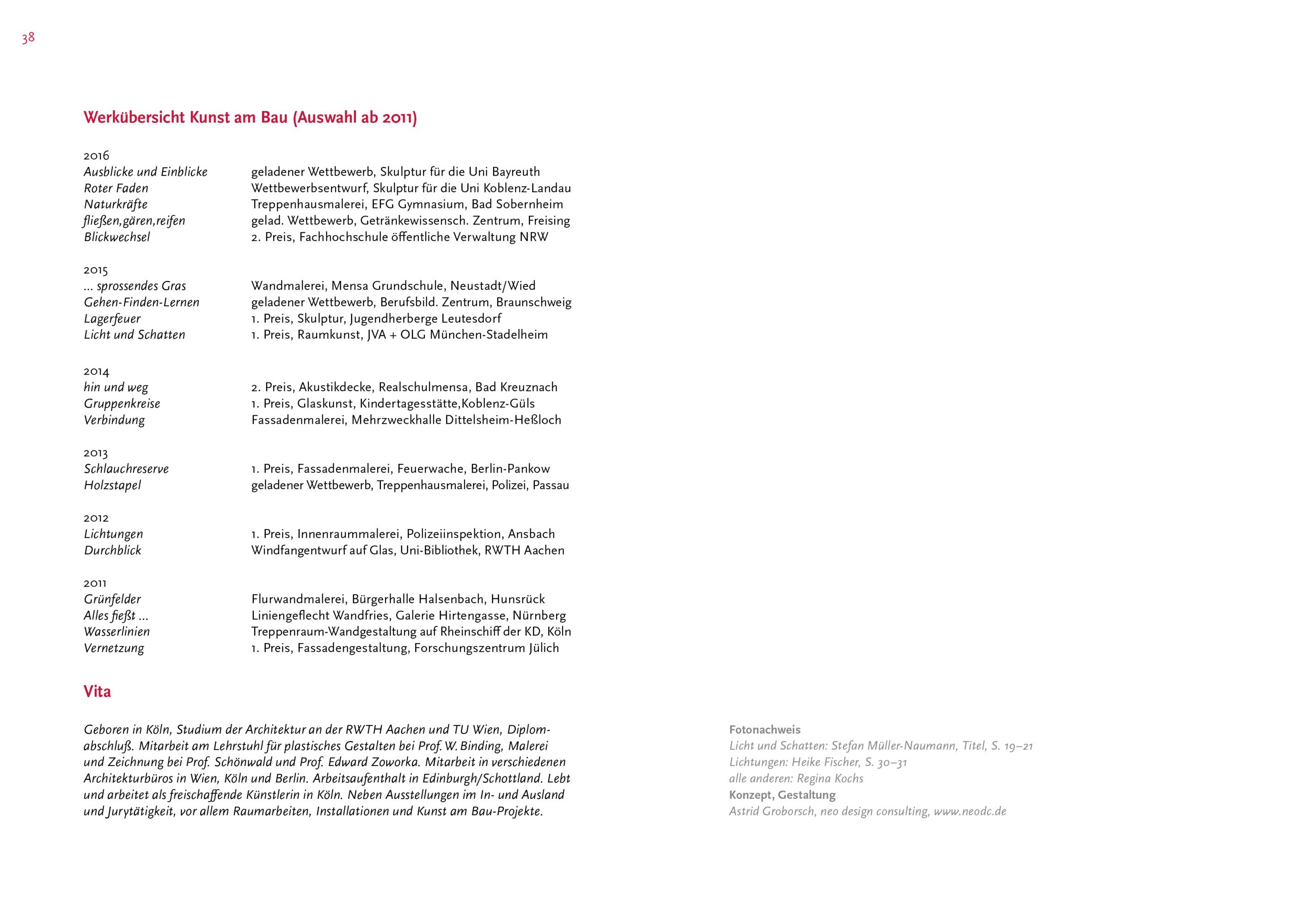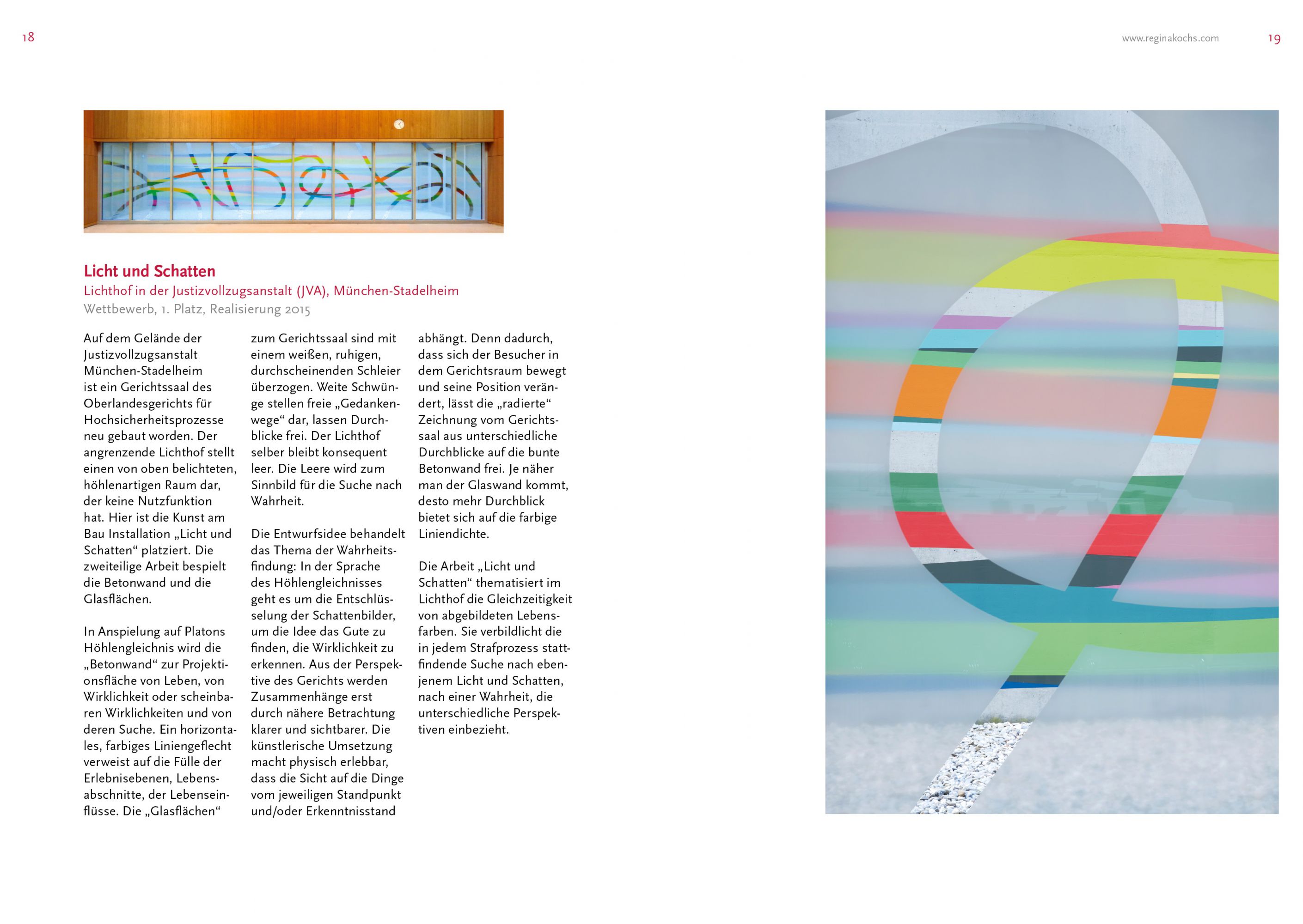 Erste skulpturale Arbeiten und Wettbewerbsgewinne, wie "Licht und Schatten" in der JVA München Stadelheim und "Schlauchreserve" an der Feuerwache Berlin Pankow sind abgebildet. Ebenso Ausstellungsbeiträge und neue Papierarbeiten...