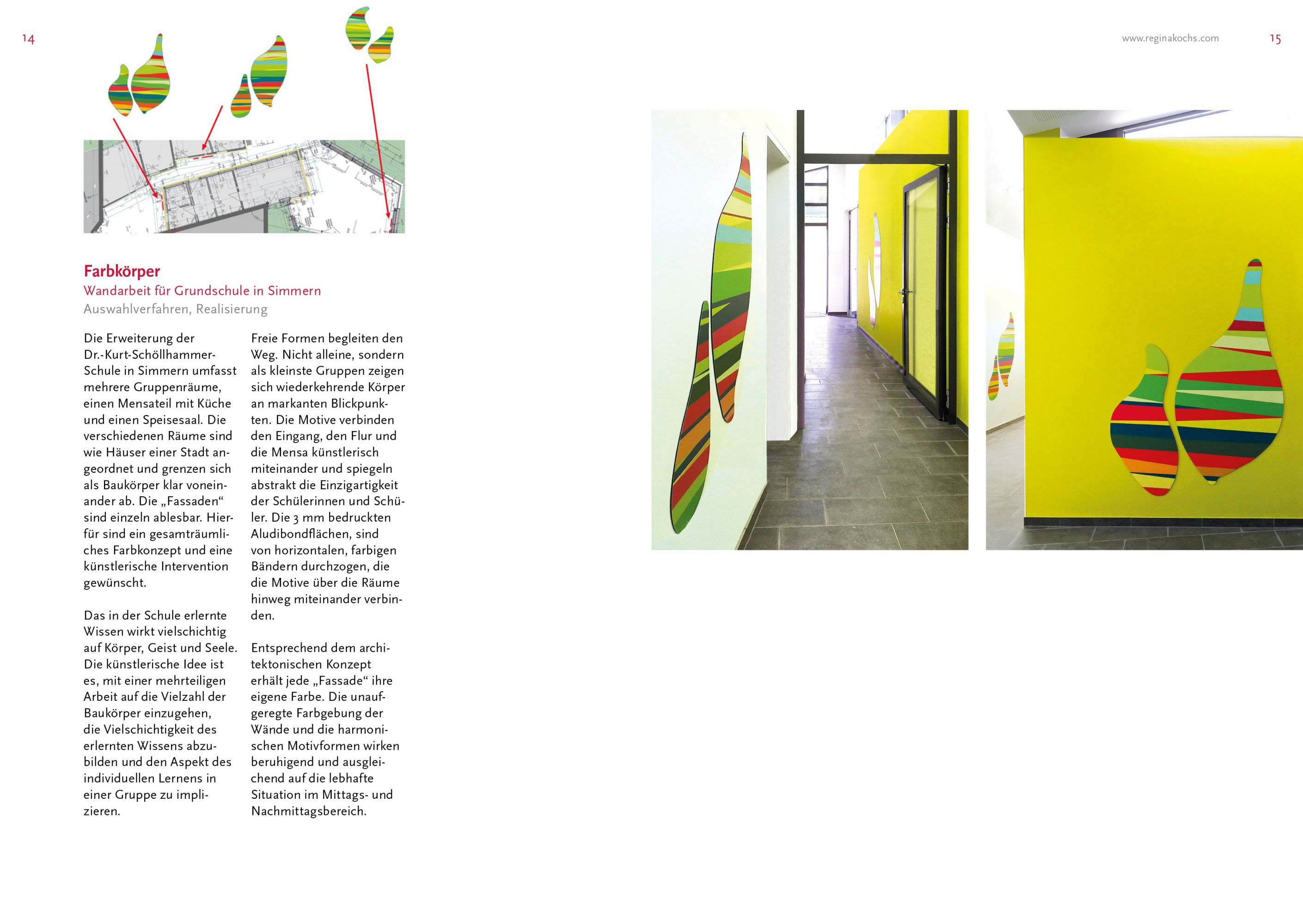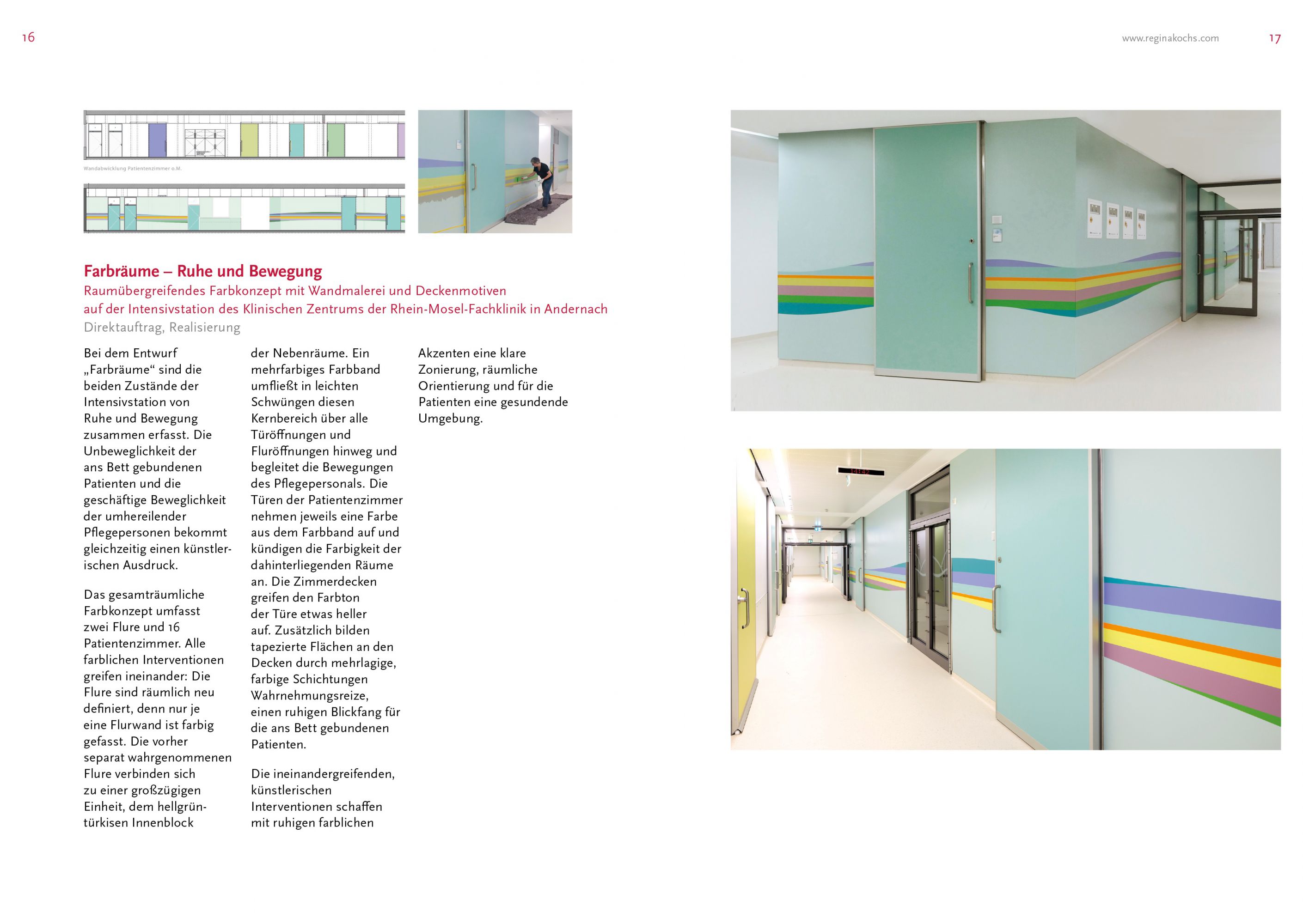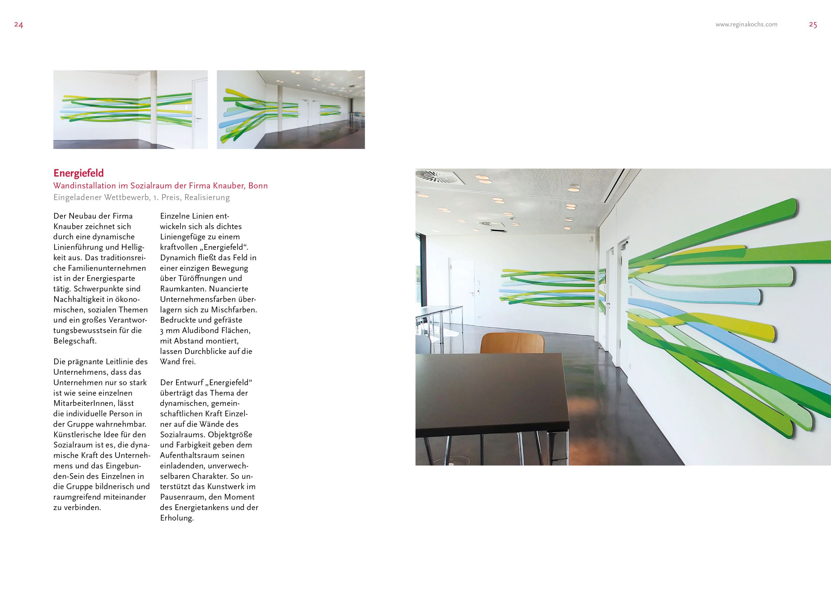 Die Flur begleitende Malerei "Schwingungen" für die Hörspielstudios des WDR, die gewonnene Fassadenmalerei im Forschungszentrum Jülich, der malerische Beitrag auf dem Schiff der KD und weitere große und kleine Kunst am Bau Projekte...