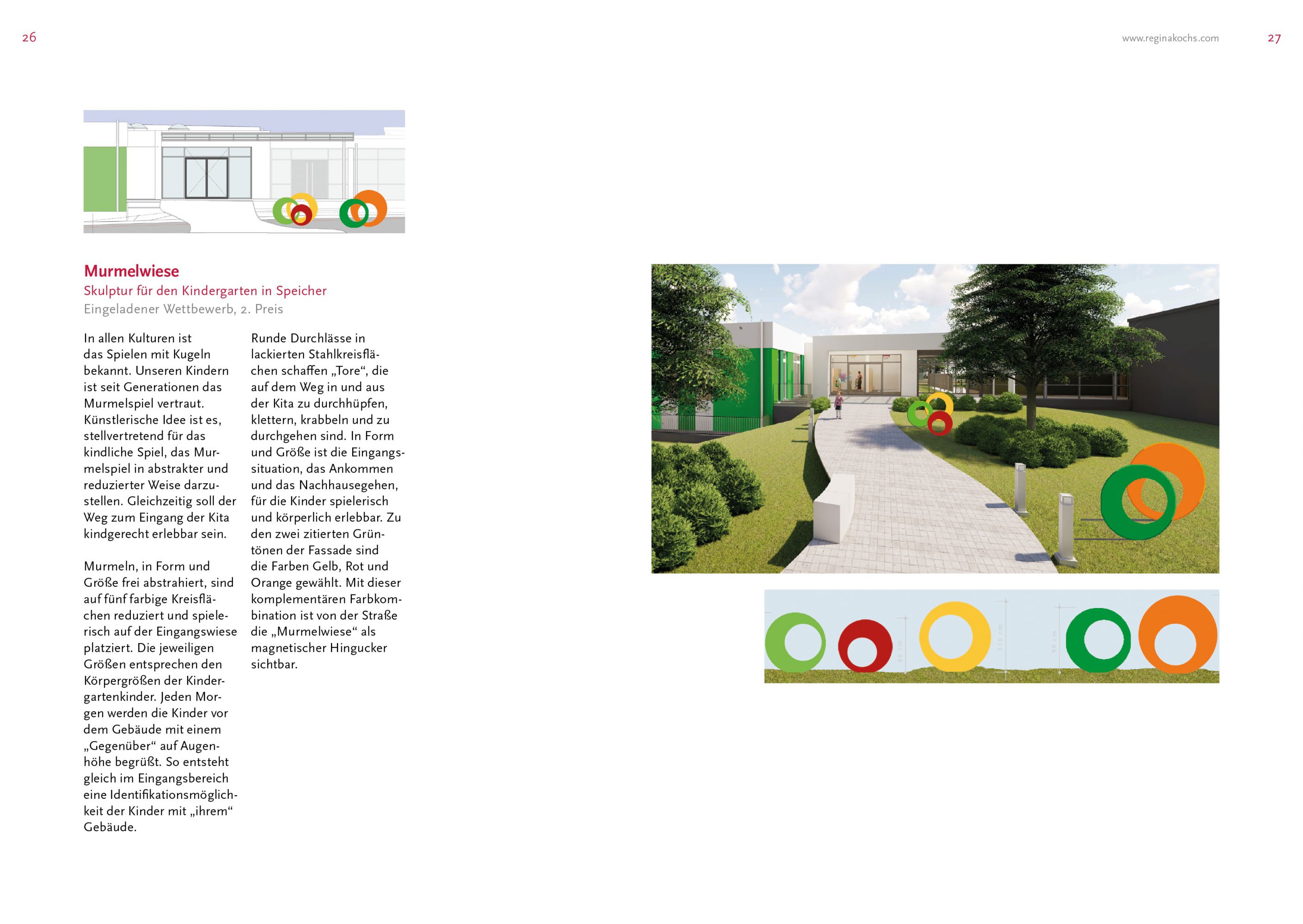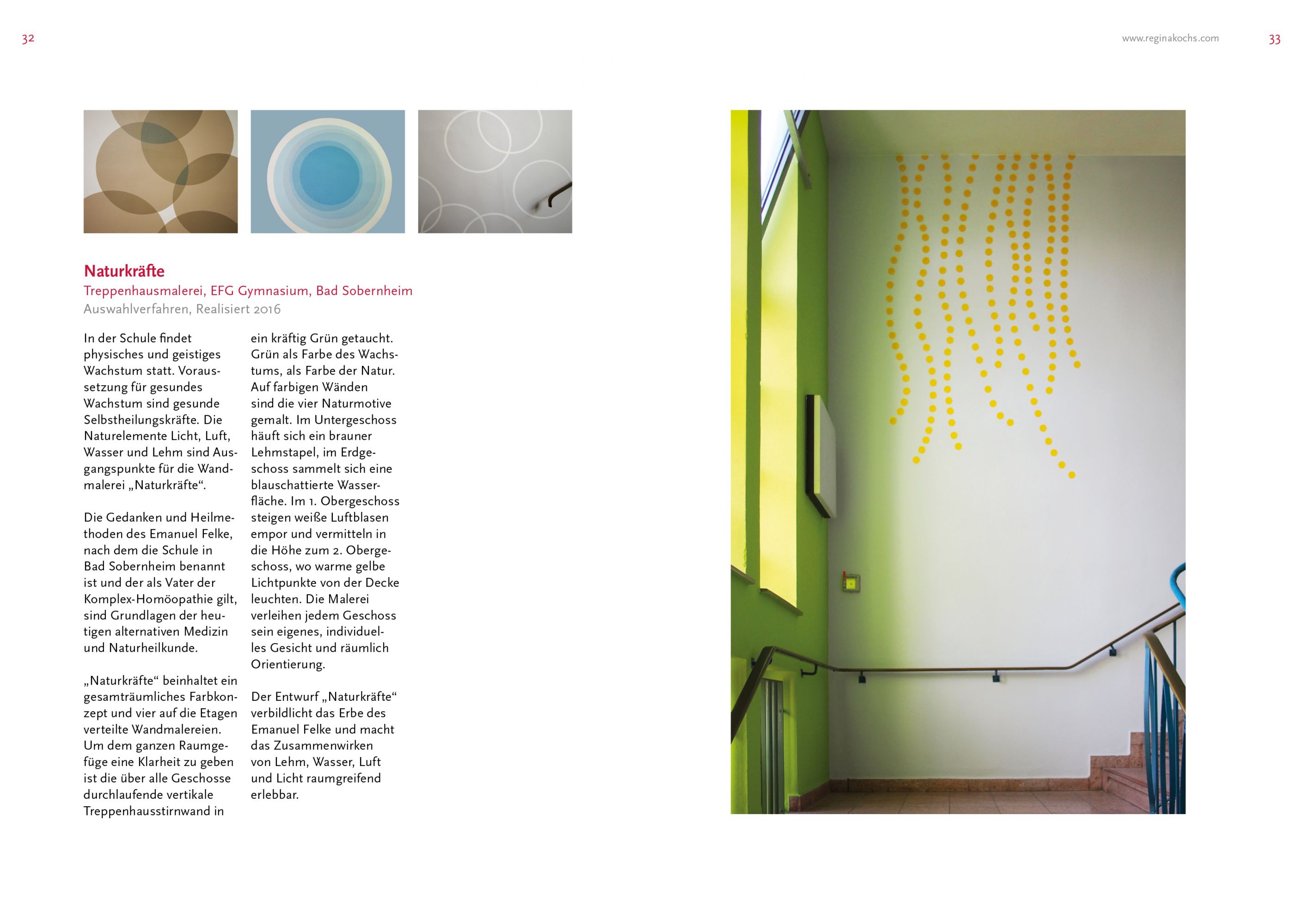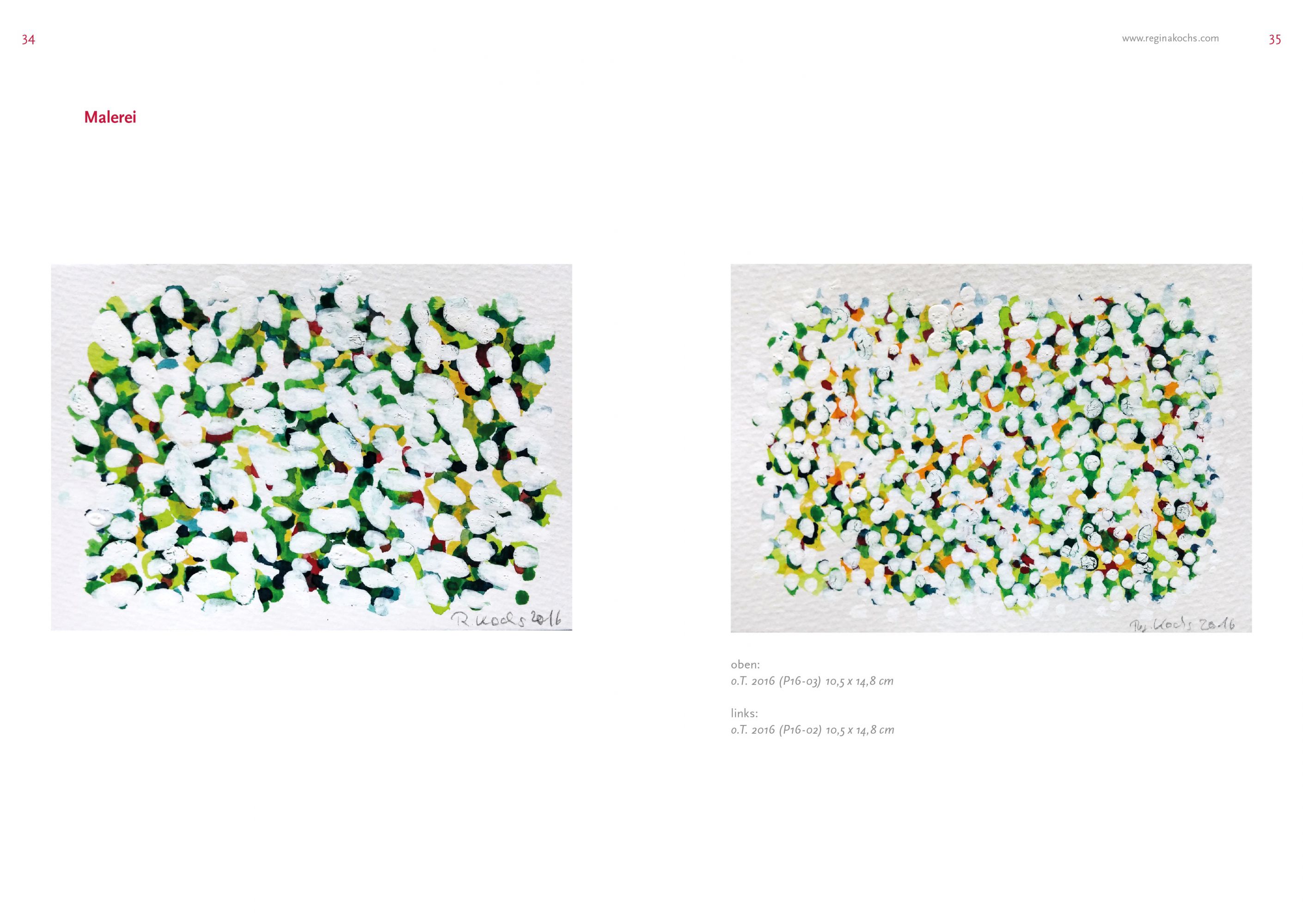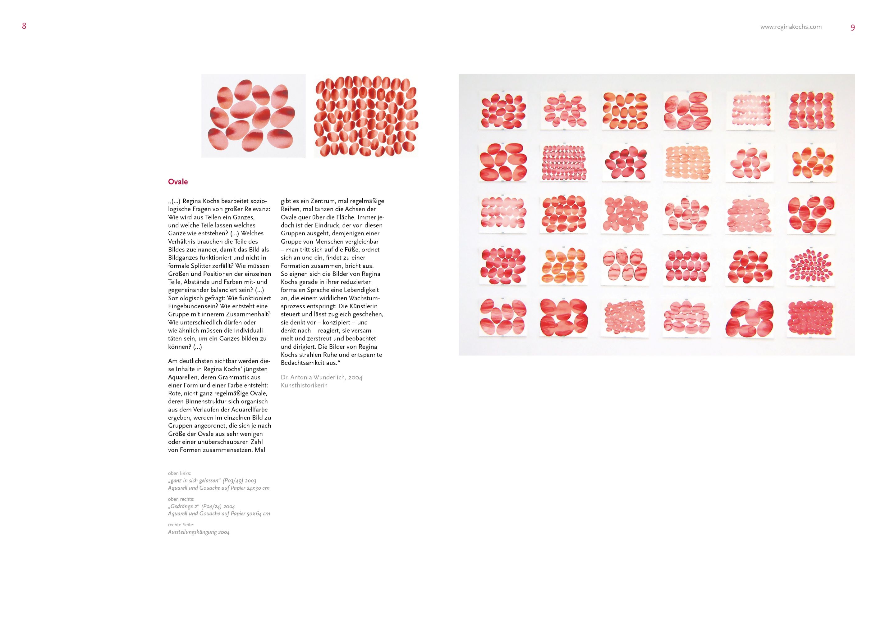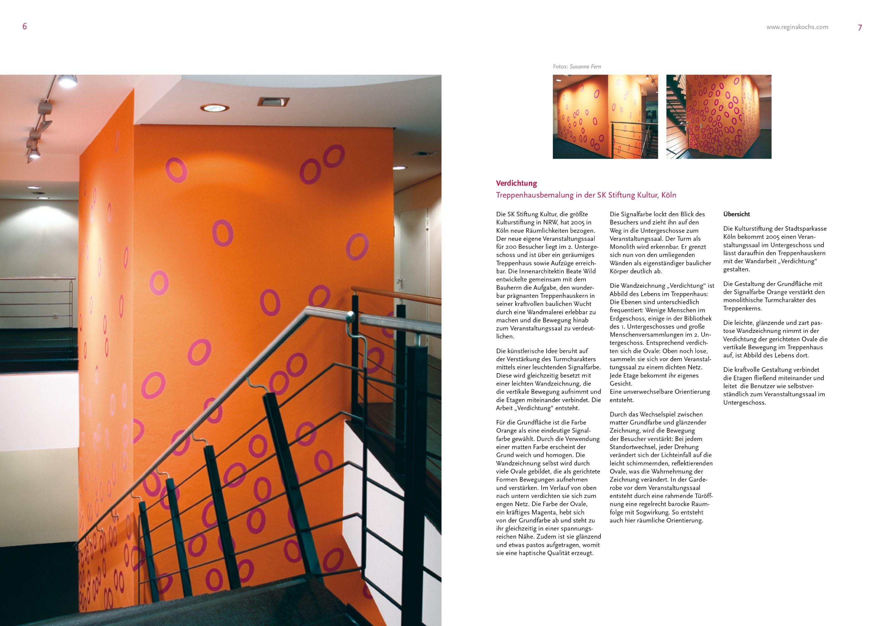 Großflächige Wandmalereien, wie die mehrgeschossige Arbeit "Verdichtung" für die Stiftung der Stadtsparkasse Köln und weitere temporäre Ausstellungs- und Wettbewerbsbeiträge sind dokumentiert. Darüber hinaus Malereien und Aquarelle, Linien, Kreise, Ovale...