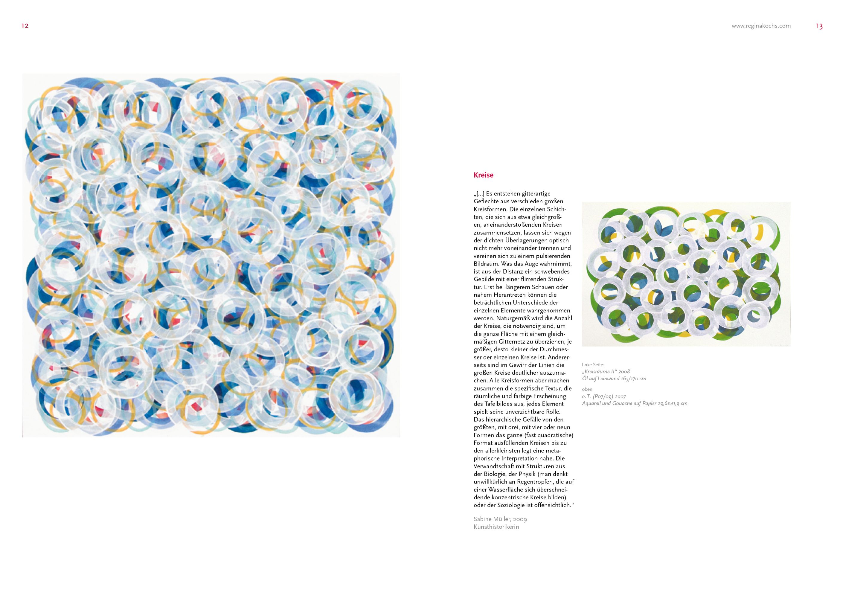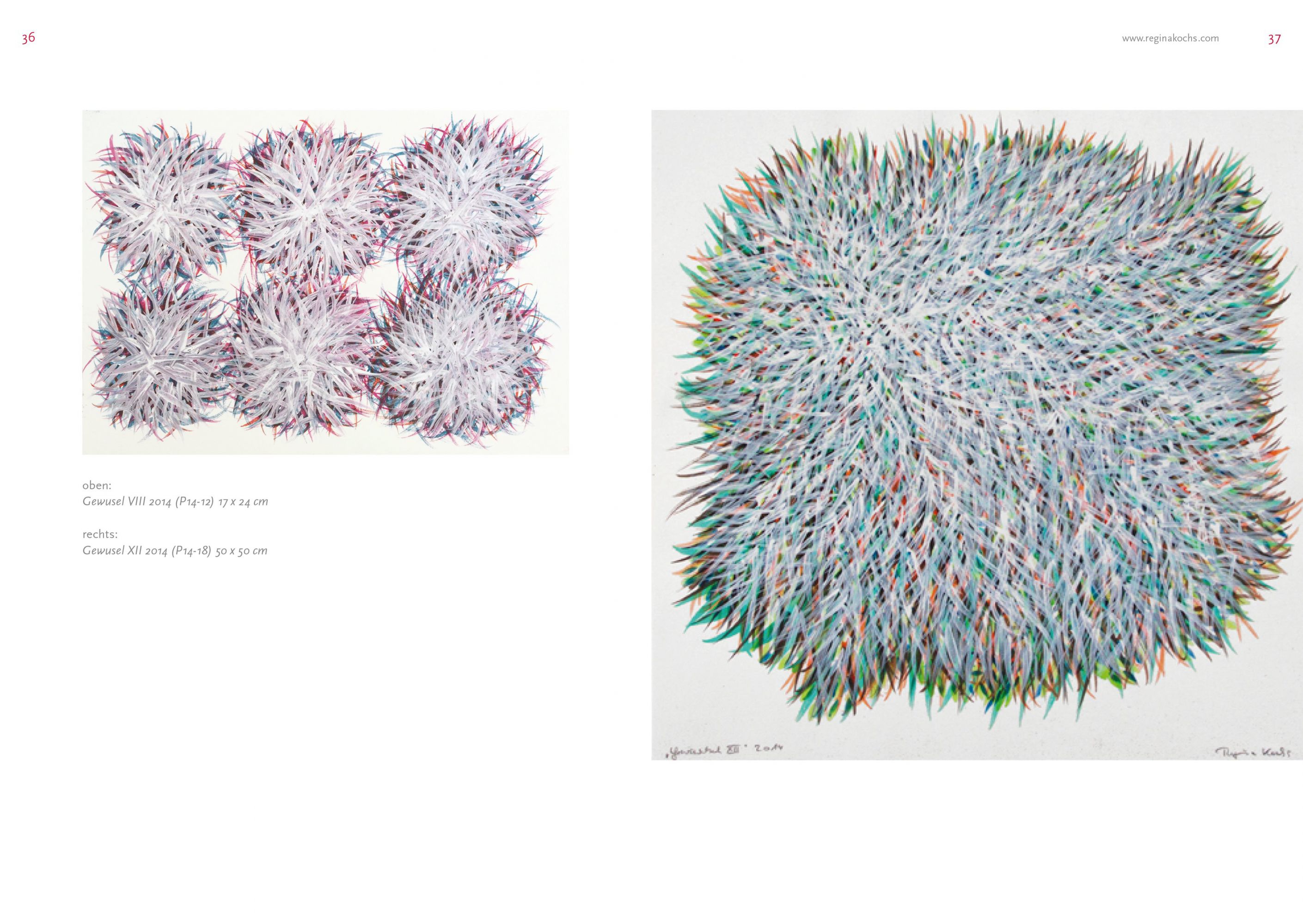 Kreisräume und Liniendichten - Zahlreiche Schichtungen und Überlagerungen in Malerei und Papierarbeiten. Text: "Das Gewebe des Bildes" von Prof. Dr. Ulli Seegers, Herausgeber: Christopher Schoer, Köln 2011. Erschienen bei DIE NEUE SACHLICHKEIT, ISBN: 978-3-942139-03-8